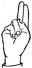 На ћирилици написано ЈАКОВ ЈЕЛЕНКОВИЋ састоји се из 15 слова [?]. Исписано ћириличном једноручном азбуком за глувонеме: